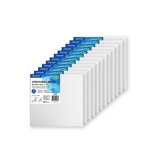 12PK Boyle Thin Edge 20x20cm/8x8" Stretched Canvas 280gsm For Acrylic/Oil Paint