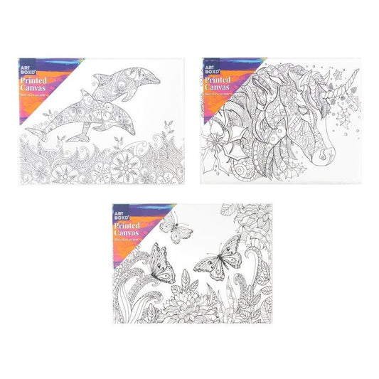 12x Art Boxd 20.3cm Printed Colouring/Painting Canvas Kids/Children Art Assorted
