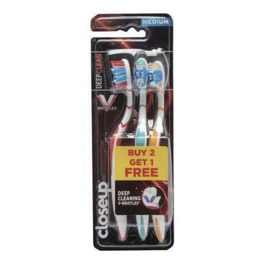 Closeup Manual Toothbrush Deep Cleaning V-Bristle Medium- 1 Pack of 3