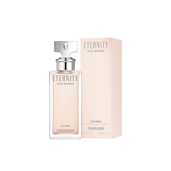 Scent: A watery floral fragrance with sparkling fruit notes, ETERNITY Eau Fresh for her is a modern, feminine fragrance that inspires spontaneity and romance. A luminous heart of jasmine and peony layers over a warm and sensual base of skin musk, amber and patchouli. Juicy top notes of sparkling pear and cassis lend joyful freshness to the intimately passionate fragrance.